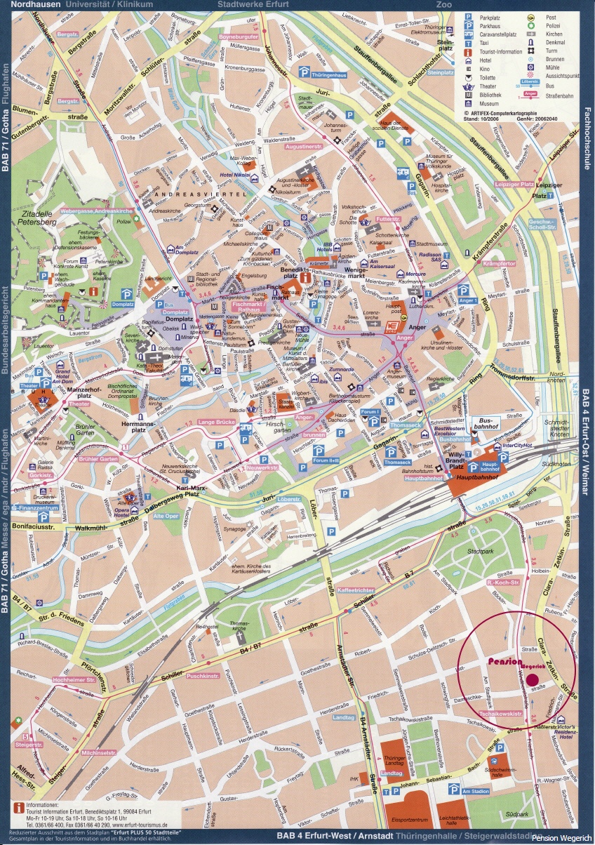 Reisen Sie mit dem Auto an, finden Sie öffentliche kostenfreie Parkplätze gegenüber der Pension, quer zur Fahrbahn bzw. auf dem rechten Gehweg. Sie können aber auch einen der 226 Stellplätze im Parkhaus "Am Stadion" nutzen, welches sich in der Johann-Sebastian-Bach-Str. 2a befindet ( ca. 500 Meter entfernt ).