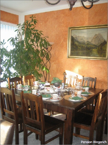 Im Erdgeschoss befindet sich der Frühstücksraum. Hier können Sie sich Montags bis Freitags von 8.00 - 10.00 Uhr und Samstags, Sonntags und Feiertags von 8.30 - 10.00 Uhr von unserem reichhaltigen Frühstück verwöhnen lassen. Wenn Sie gern Kaffee trinken oder einen Tee oder heiße Schokolade bevorzugen, werden Sie unser Frühstück schätzen.